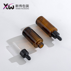 スポット 30 ミリリットル茶色のフラットショルダードロッパーボトル茶色の遮光ボトルエッセンス液体ボトルガラスエッセンシャルオイルボトル包装材