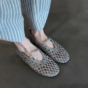 シープスキンバージョン〜フレンチウーブン中空通気性ニッチフラットサンダルレディース夏浅い口ストラップラウンドトゥシューズ