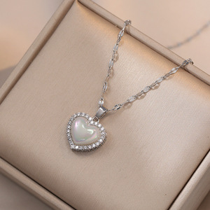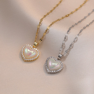 マーメイドフルダイヤモンドラブパールネックレスレディースシンプルでハイエンドのデザイン気質チタン鋼鎖骨チェーンジュエリー卸売