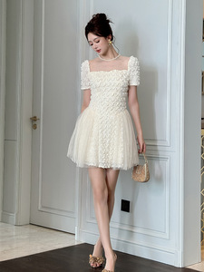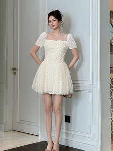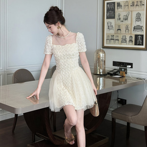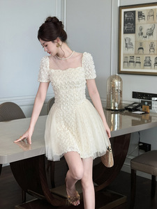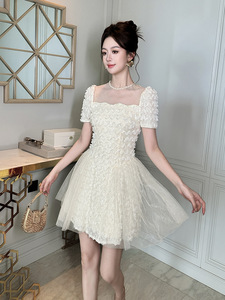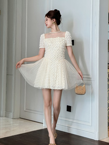 2025 新しい夏スタイルセレブ娘スタイルデザインメッシュ花びらウエスト小さなドレス女性 21738