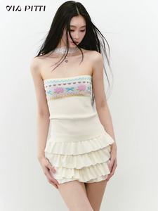 レースホルターネックパッチワーク美しいバックベストチューブトップ女性のための夏の新しいアメリカンスリムフィットデザイントップアウターウェア女性のための