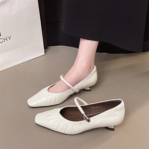 2025年新作 ワンストラップ フレンチレトロ シルバー メリージェーンシューズ レディース 太ヒール エレガント ハイヒール シングルシューズ グラスヒール