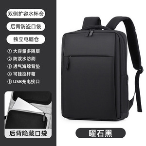 ダークナイトブラックダブルウォーターカップコンパートメント+トロリーストラップ+背面通気メッシュ