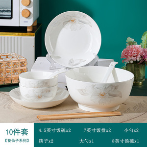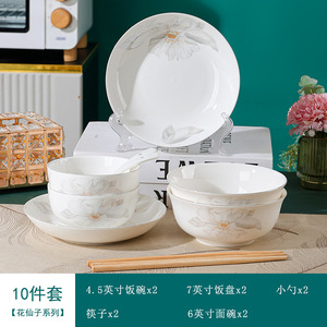 高級花の妖精のボウルと皿セットスープボウル丼シンプルな食器セット高温焼き花セラミック家庭用ヌードルボウル