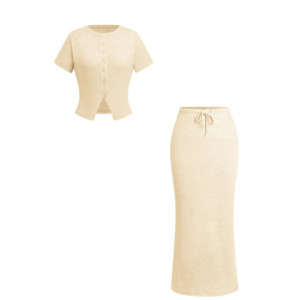 2025 夏の新スタイル AliExpress Amazon ヨーロッパとアメリカの貿易スリムセクシーなボタン半袖ロングスカートスーツ女性のための