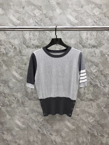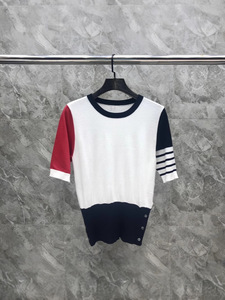 TB 夏の新しい女性のニットコントラストカラー半袖ファッションカジュアル多用途快適な痩身トレンド