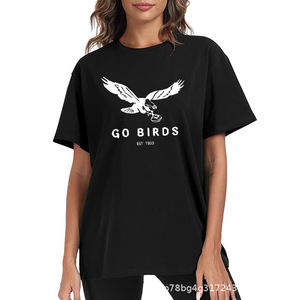 ヨーロッパとアメリカの女性の Tシャツ新しいルーズクロスボーダーファッション快適なレディースラウンドネック GO BIRDS プリント Tシャツ