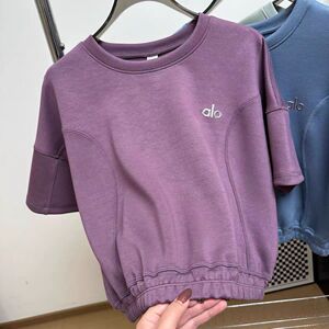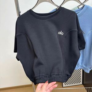 aloクラス 春夏 エアレイヤー ヨガ ショートTシャツ 伸縮性裾 おへそ出し ウエスト半袖トップス