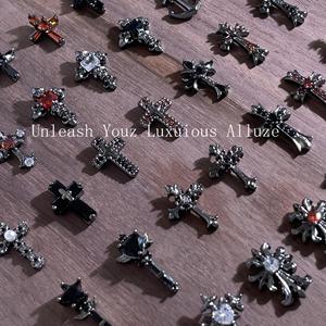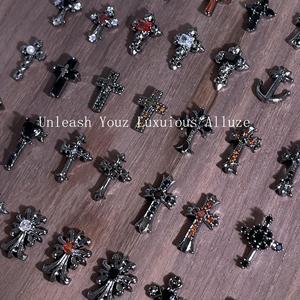 lz 新クローハートネイルアートジュエリー 402 パンクスタイルクロスダークフルダイヤモンドジルコン立体ネイルデコレーション