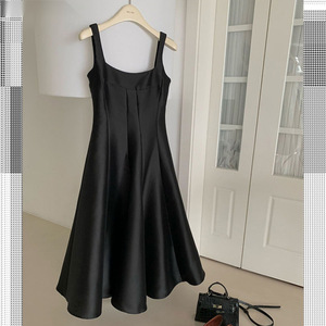 年夏季新款赫本裙收腰温柔缎面光泽感气质吊带连衣裙礼服