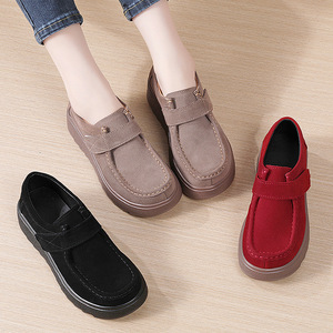 ヨーロッパ厚底プラットフォームシューズ女性用牛革2025春秋新作厚底防水プラットフォームウェッジヒールベルトバックルシューズ