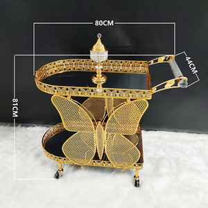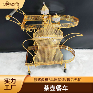 中東ティーポットダイニングカーモバイルトロリーハイエンド収納カートホテルドリンクカートゴールデン多層鉄ダイニングカート