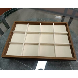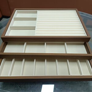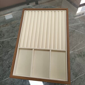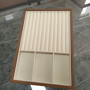 クルミ柄木製ジュエリートレイネックレスリンググレーベルベット見本パレットジュエリーブレスレットカウンターベルベットディスプレイトレイ