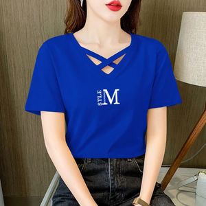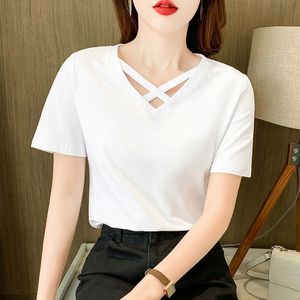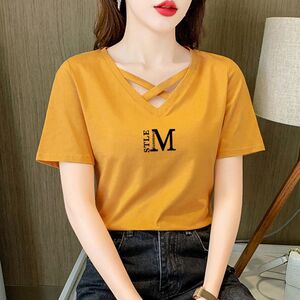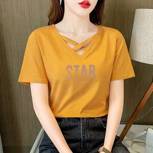 夏の新黒綿 V ネック半袖 Tシャツ女性の 2025 韓国ファッション小デザイントップトレンディ