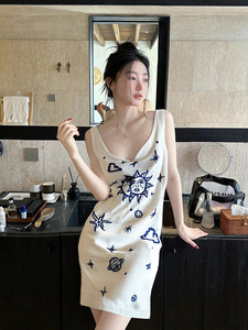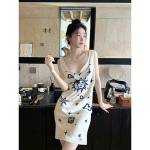 レトロなデザインのヘビーリネンナイトガウン女性のための夏の新しい大きいサイズのプリントベストホームロングスカートは屋外で着用できます
