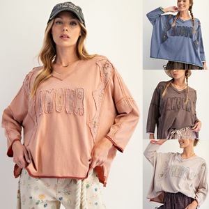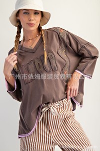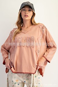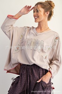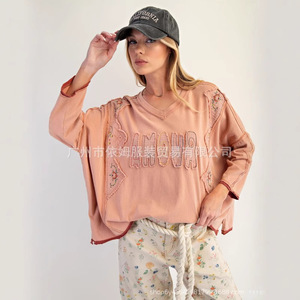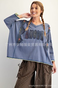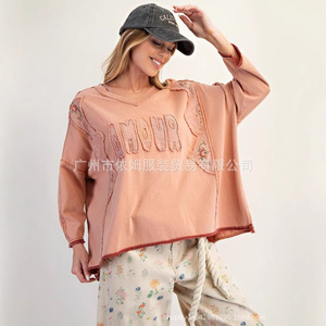 Amazon 25秋の新作クロスボーダーヨーロッパとアメリカの衣類パッチワークルーズスウェットシャツプルオーバーコントラストカラーラウンドネックトップ