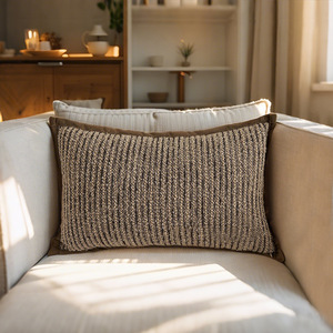 ブラウンわびさびスタイルシンプルストライプつば広枕腰枕枕カバーリビングルームソファクッション無地