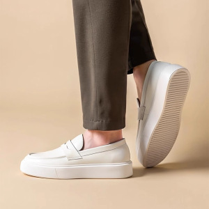 ヨーロッパステーション夏の新作紳士靴本革スリッポンローファーメンズ英国風厚底身長を伸ばす白靴