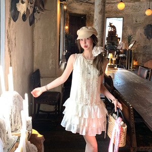 axbbb 大吉岭山茶花 90天丝连衣裙立体花边裙摆圆领套头短裙女