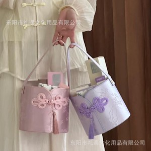 新款新中式高档旗袍风婚庆伴手礼简约款生日礼物圆桶手提抱抱桶