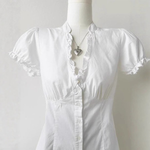 カスタムメイドの女性用シャツ、白のVネック、2025年夏の新作、個性的なデザイン、今年の流行、美しいシャツ、折り返し襟