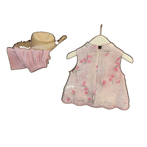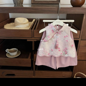 酔った桃の花女の赤ちゃんサマースーツ 2025 新中国風ピンクジャカードチャイナストレートパンツスーツ