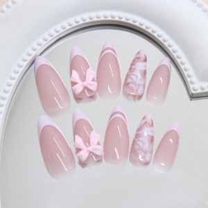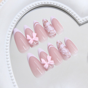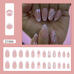 甘いフレンチリボン、細かいグリッター、染み込み、多用途、ヨーロッパとアメリカのインスタイル、取り外し可能なマニキュア、24枚