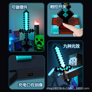Minecraft 光るダイヤモンドソードピクセルエンチャント可能変色おもちゃ周辺機器ナイトライト装飾品ギフト