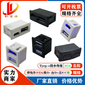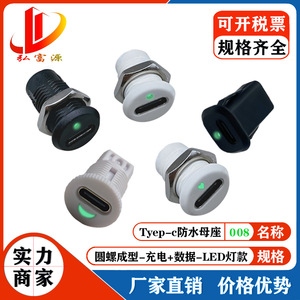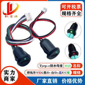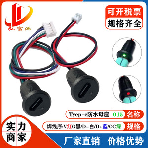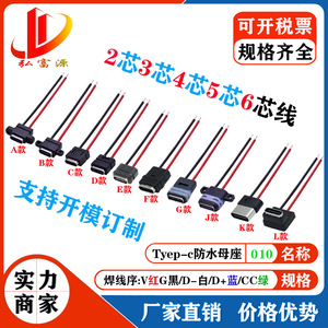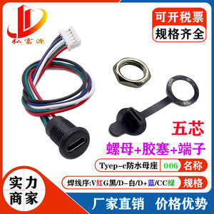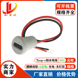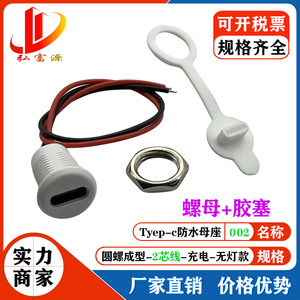 TYPE-C 2PIN带线防水母座带PH2.0端子螺母锁板透明带灯台灯充电口