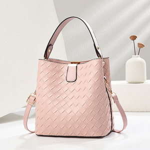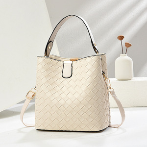 韓国版のトレンディな織りバッグ、カジュアルで多用途なポータブルバケットバッグ、2025年の新しいレトロな大容量のシングルショルダークロスボディバッグ