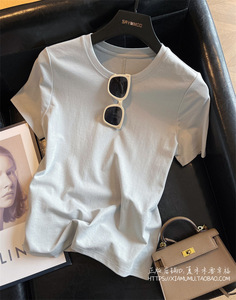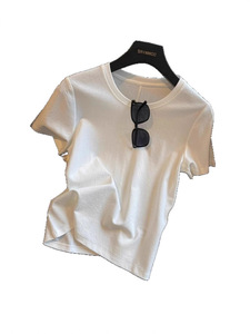 素晴らしい商品!シルクアセテート立体裁断ラウンドネック右肩無地半袖レディースTシャツ2025春夏 G033120