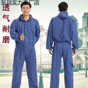 ワンピースデニムオーバーオール、通気性スーツ、作業服、男女溶接、自動車修理、スプレー塗装機、修理労働保護服、防塵服