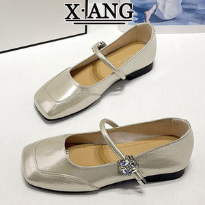 本革浅口靴、柔らかい靴底、足が疲れにくい婦人靴、2025年新作夏スカート付き平底フレンチメリージェーンシューズ