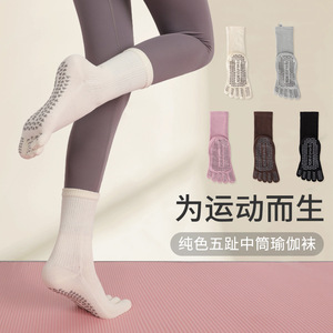5本指ヨガソックス、プロ仕様の滑り止めミッドチューブ屋内スポーツソックス、ピラティスソックス、秋冬暖かいフロアソックス、ダンスソックス