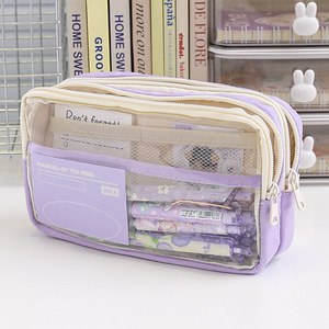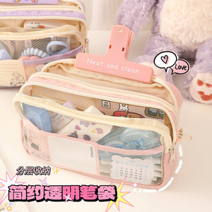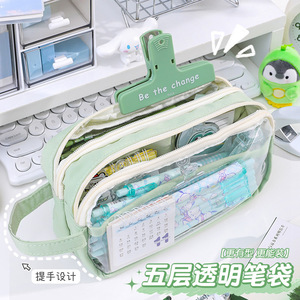 5層の大容量透明ペンケース 女の子 中学生 小学生 筆箱 シンプルな文房具収納バッグ