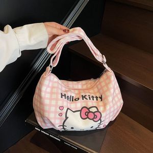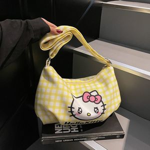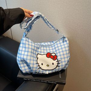 夏多用途チェック柄 KT 猫漫画ショルダーバッグ 2025 新しいカジュアル学生バックパック通勤多用途クロスボディバッグ
