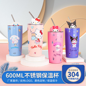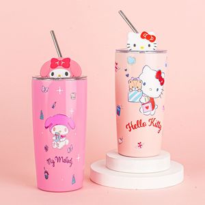 クリエイティブサンリオストローコーヒーステンレス鋼断熱カップ漫画新画像かわいいシリコーン人形 600 ミリリットル