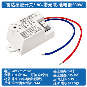 レーダーセンサースイッチ 5.8G-感光リレー200W付き
