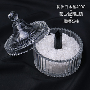 优质白水晶400G+满天星消磁碗+4-5cm黑曜石柱