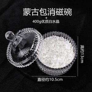优质白水晶400G+蒙古包消磁碗+4-5cm粉水晶柱