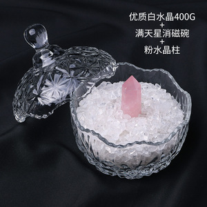 优质白水晶400G+满天星消磁碗+4-5cm粉水晶柱