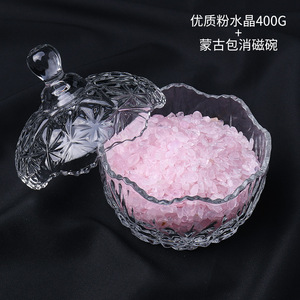 优质粉水晶400G+蒙古包消磁碗+4-5cm粉水晶柱