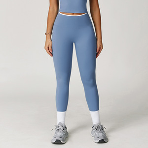 Zechuang クロスボーダーヌードヨガパンツハイウエストコントラストカラー速乾性パンツスポーツランニングフィットネススポーツタイツ 9238