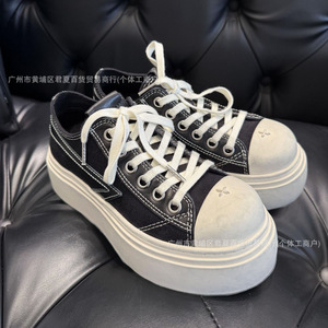 2025 新スタイル流星靴 smfk ダーティシューズクロスフラワーレトロ古い黒と白のコントラストカラーカジュアルスニーカー女性のための