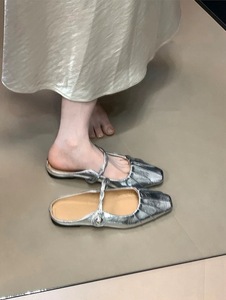 女性用フレンチトゥハーフスリッパ、プリーツ高級メリージェーンシューズ、ミュール、万能サンダル