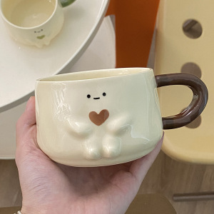 呆萌表情爱心立体浮雕杯子ins风高颜值情侣水杯对杯家用咖啡杯子