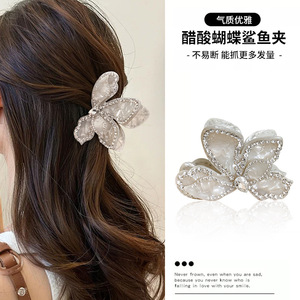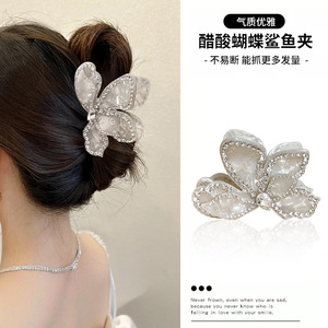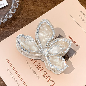 Zhao Lusiと同じスタイルのベニヤダマ立体フラワークリップ、女性向けの高級感のあるダイヤモンド付きアセテートシャーククリップ