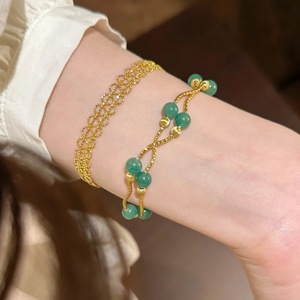 新しい中国風のブレスレット、天然アフリカエメラルドブレスレット、二重サークルスタックデザイン、ミッドセンチュリースタイル、軽い高級ブレスレット、人気のスタイル