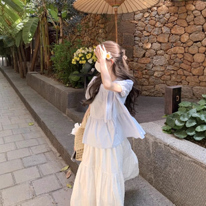 新しい白いリボンレースパフスリーブシャツ女性の夏のデザインプリーツストラップシャツ女性のトップス夏