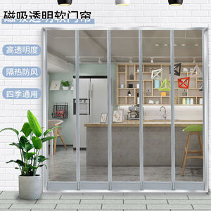 磁気自吸式エアコンソフトドアカーテン防風スーパーマーケットショップオールシーズンマグネットパーティションカーテン透明プラスチックpvc